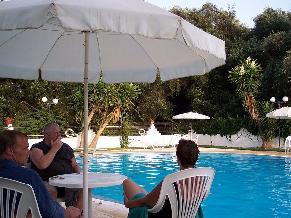 Kresten, John og Kirsten ved poolen på 'Camping Kalamitsi Beach'. - Grækenland 3. august 2005.