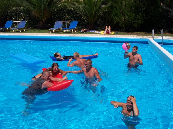 I swimmingpoolen på Karda Beach camping for sidste gang.