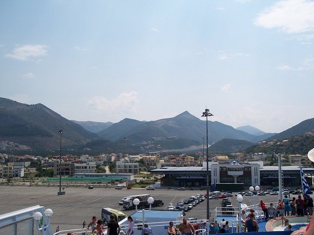 12. juli, kl. 11.48: Vi lægger til kaj i Igoumenitsa, Grækenland