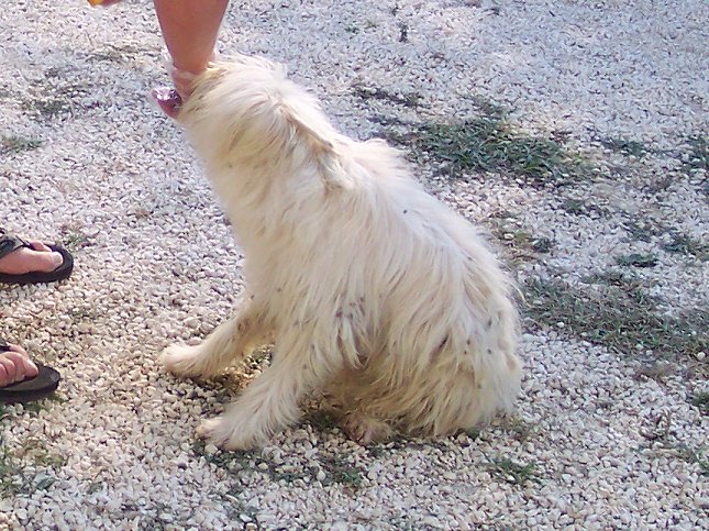 19. juli: Christoffer - om morgenen - med den lille hund, fyldt med burrer.