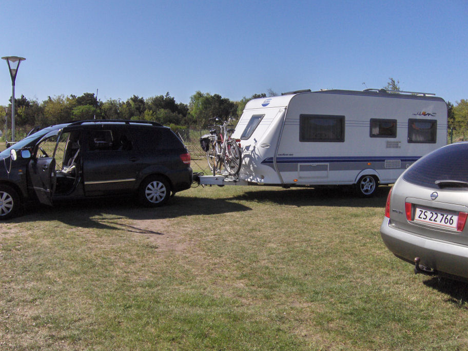 John får besked om, at hans bil er færdig lidt over 10. Klar til afgang fra Ribe Camping: