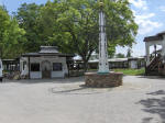 Udsigt til et tårn over en port - set fra restauranten - og samme tårn set fra gaden ved jernbanen: