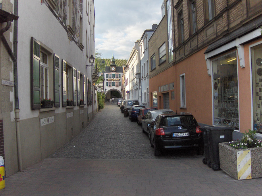 Vi cyklede ind i Drosselgasse og fik en øl på en restaurant med gårdhave: