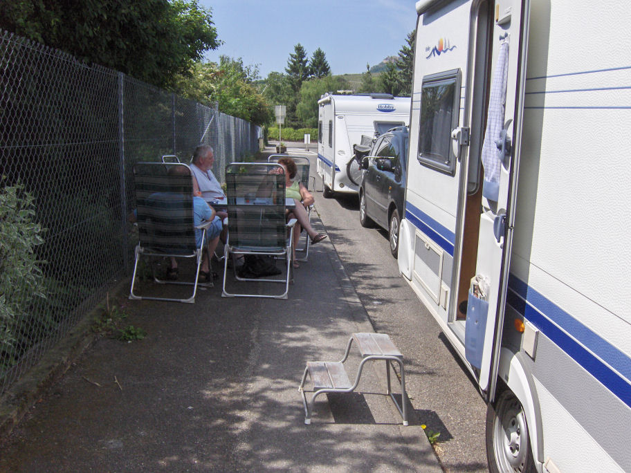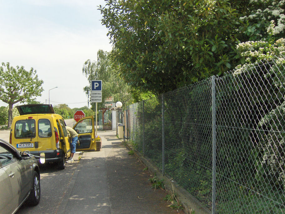 Ankomst til 'Camping Municipal Pierre de Coubertin', Ribeauville - der var middagslukket, så vi fik vores frokost i skyggen. 25 grader.
