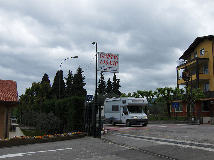 Vi ankom til Camping Cisano kl. 15 - der var 12º og silende regnvejr. Pladsen er rigtig godt besøgt trods årstiden. Det er godt, at vi har movere på campingvognene ellers havde det været svært at få vognene på plads på den lidt skrå og meget våde plads, men med moverne var det let nok.
