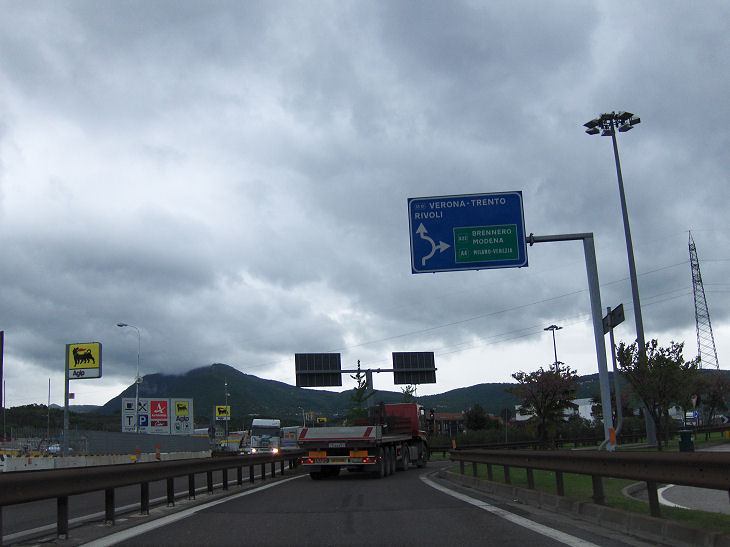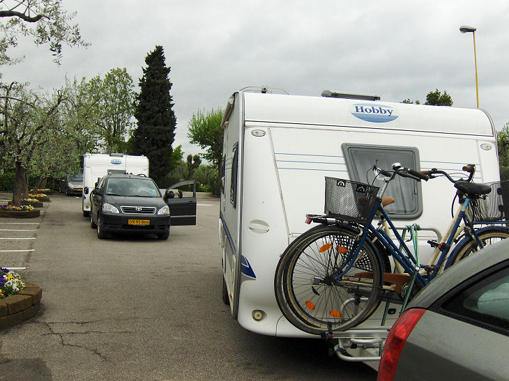 Afrejse fra Camping Villagio dei Fiori, San Remo kl. 9.15 i 14º varme. Vi kører mod Camping Cisano, Bardolino ved Gardasøen - side 478 i Camping Cheque bogen 2009.