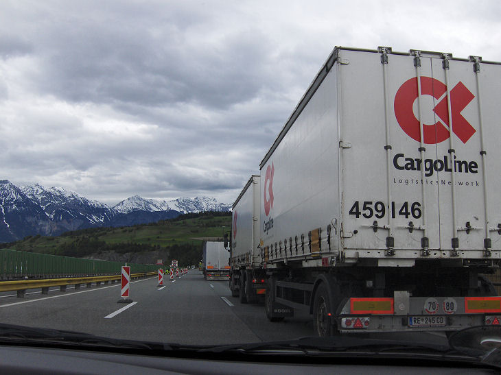 Da vi kom kørende bag denne bil-transporter, faldt der en stor kraftig metalring