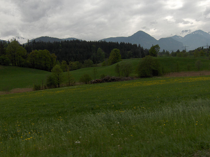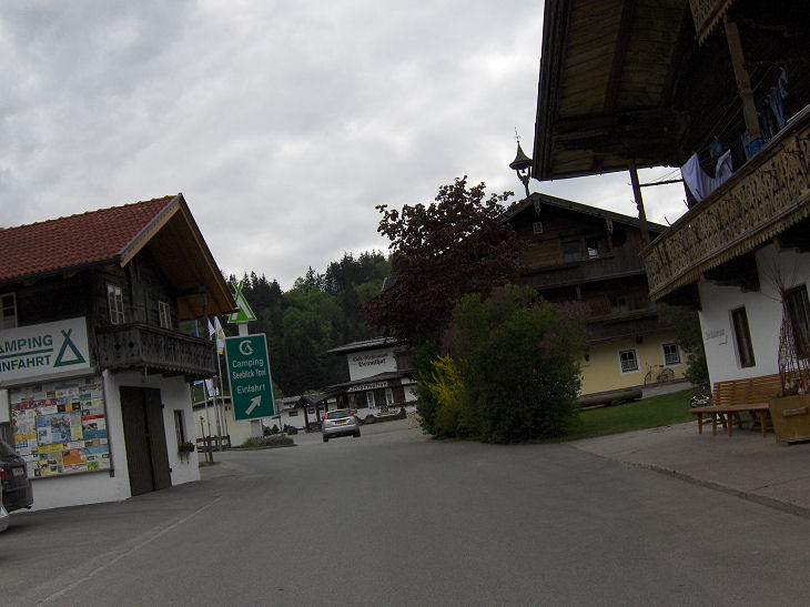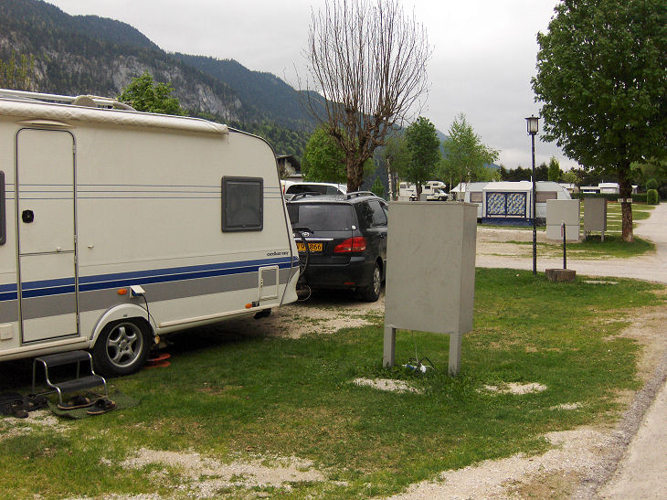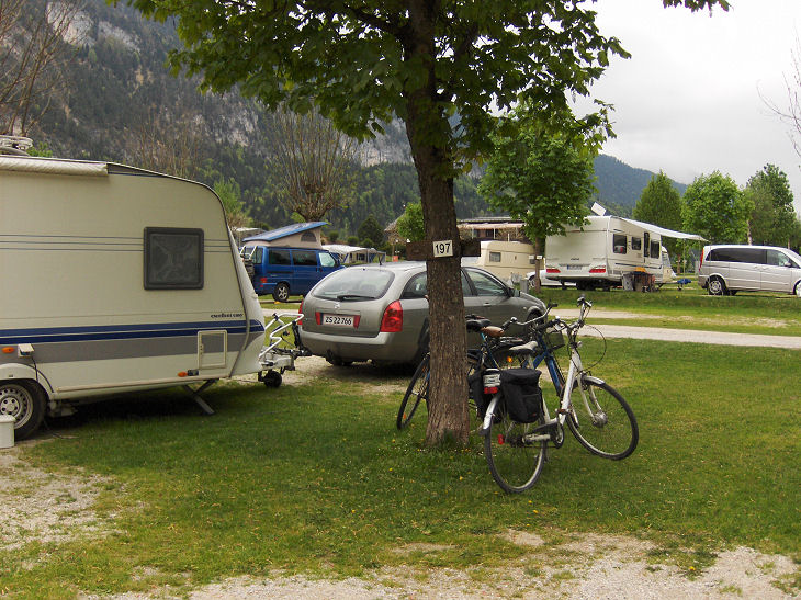 Ankomst til Camping Seeblick Toni, Kramsach, Østrig ved 15 tiden. Temperatur 20º og skyet: