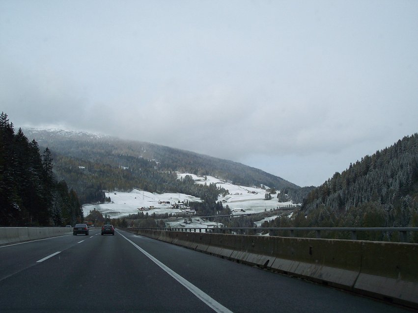 Kort før vi kørte ind i Østrig begyndte det at sne og der var kun minus 2