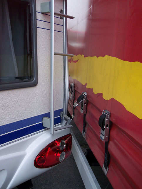 Lastbilchaufføren underskrev skadesanmeldelsen og påtog sig det fulde ansvar, vi holdt jo også parkeret, så der var ikke noget at diskutere. Stigen blev afmonteret og det var ikke værre, end at vi kunne fortsætte ferien.