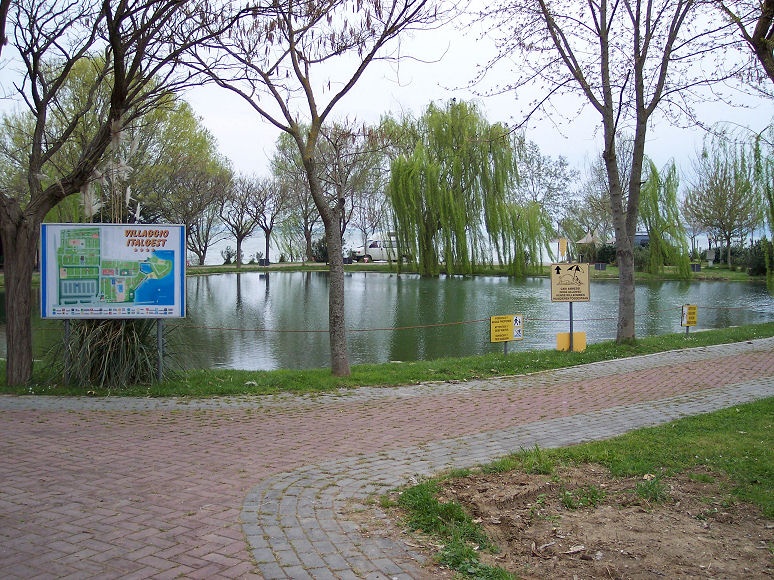 Vi kørte videre - efter vores GPS - mod en campingplads, der hed Villagio Italgest (side 531 i Camping Cheque bogen). Vi fulgte en poi på GPS'en, som jeg havde downloadet fra en mappe, der hedder CC-IT. Der var ikke opgivet nogen gade eller by, men det er der ikke på temmelig mange af de poi, jeg har downloadet, men poi'sene er som regel rigtige. Dette poi-punkt var absolut ikke til at regne med. Der var ingen campingplads på stedet, så man skal altså ikke stole blindt på de poi, man downloader. John havde også fundet en poi på samme campingplads, og da vores ikke var rigtig, fulgte vi deres GPS. Da vi ankom til Camping Villagio Italgest var vi 30 km fra det sted, vores poi viste os hen. Men der var da en udmærket udsigt på det bjerg, vi fejlagtigt havnede på.