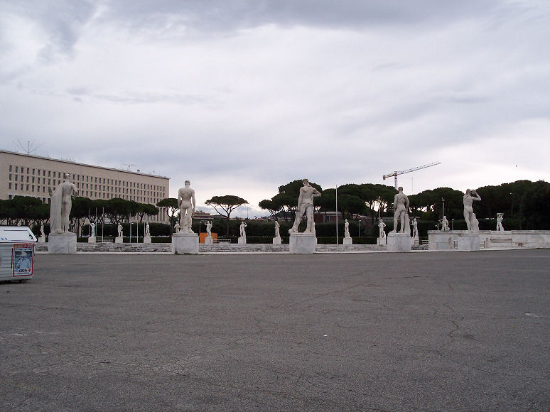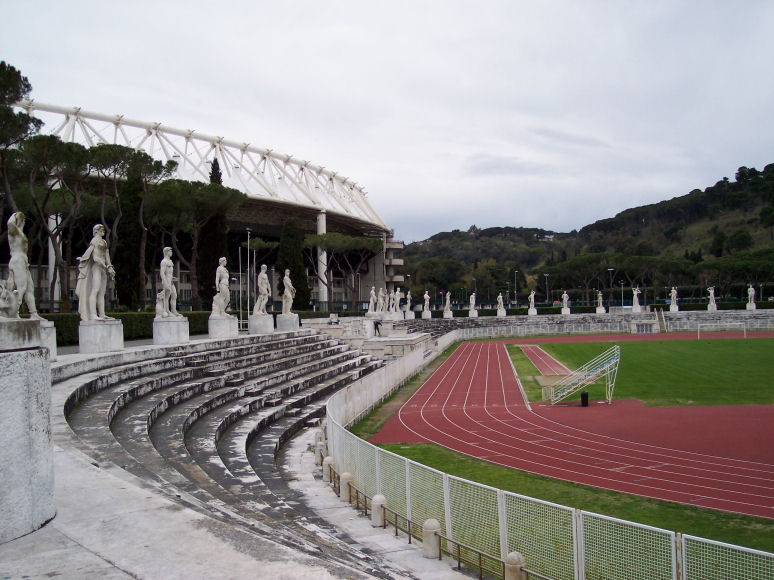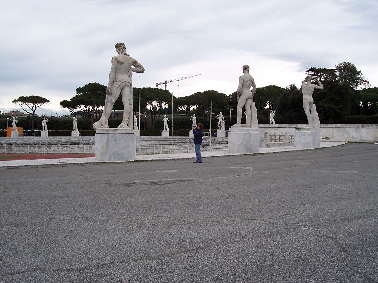 Vi kørte ind og kiggede på OL-stadion i Rom (OL i Rom i 1960): Man kan ikke andet end at blive imponeret over alle marmorstatuerne.