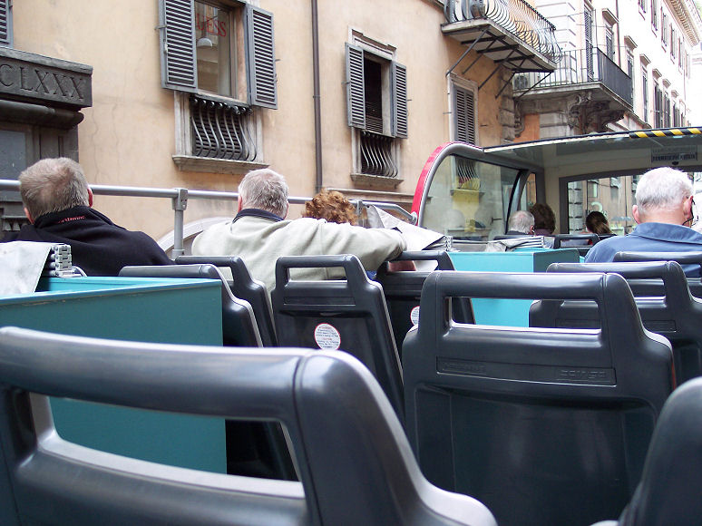 Vi kørte kun 29 km den dag, men det tog sin tid at komme gennem byen. Hvis man bor på Camping Roma, kan man tage bus 246, der holder i nærheden af pladsen, den kører til jernbanestationen, hvor man kan stå på en turbus. Der er forskellige ruter. Vores tur kostede 16 Euro pr. person og varede 1 time og 40 minutter. Havde vi vidst på forhånd, at man kunne komme på sådan en tur, var vi nok startet tidligere på dagen og var stået af forskellige steder på turen. En billet varer en hel dag, og man kan også købe en billet, der varer i to dage.
