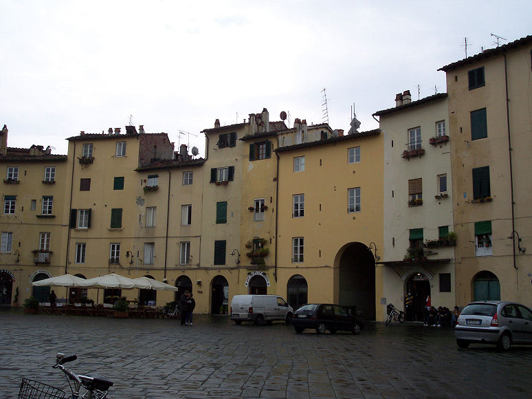 Vi kørte en tur til Lucca, der ligger 27 km fra Pisa. Vi havde taget cykler med og parkerede ved bymuren. Det regnede lidt og der var kun 16º.