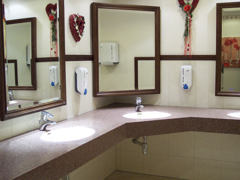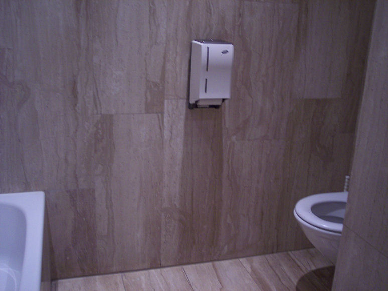 På Camping Seeblick Toni kom den meget venlige campingvært ud og tog imod os og gav hånd. Vi fik anvist pladser og fik udleveret armbånd, der skulle åbne døren til baderumsbygningen. - Og så skulle jeg lige tjekke forholdene af i baderummene, det er jo ingen hemmelighed, at det er det, jeg går mest op i på en plads. Jeg var målløs! Aldrig har jeg set så fine forhold. Vi har før været på 5 stjernede campingpladser, men har aldrig før fået serveret et komplet badeværelse med Grohe bruser, håndvask og toilet og vægge og gulv helt i marmor. Og der var mange af dem. Nogle af badeværelserne havde endog badekar. Der var også et rum med to tørrehjelme.