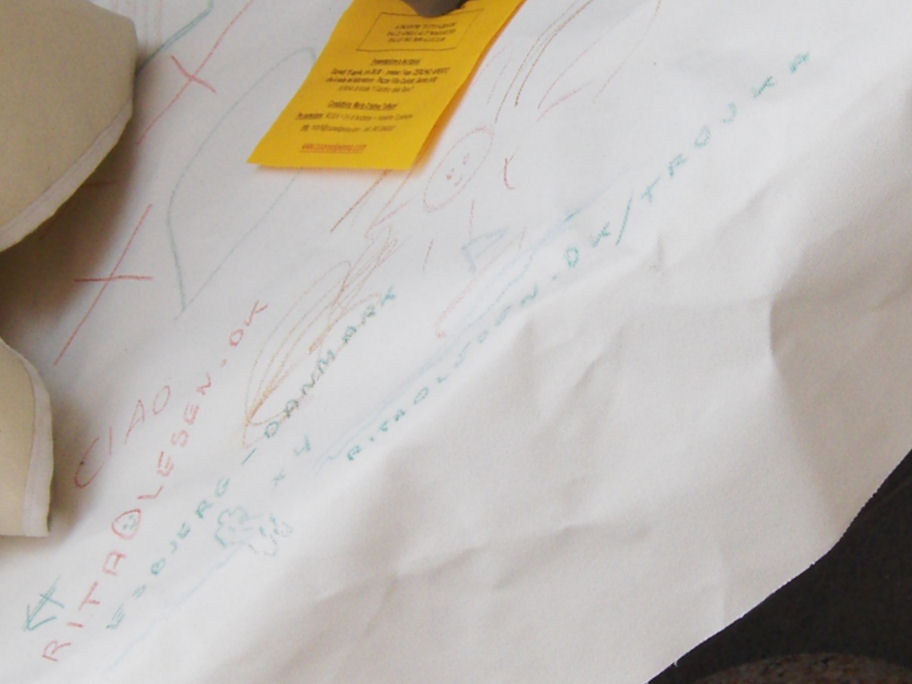 På restaurant i Garda, man kunne tegne eller male på dugen, der var et malerlærred