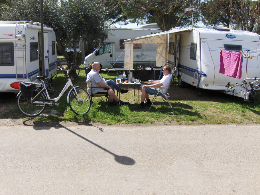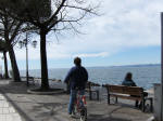 På vej tilbage til camping Serenella besøger vi en af de små strandrestauranter Den kvindelige indehaver kan godt huske os fra tidligere, vi har været både de sidste gæster, den dag sæsonen sluttede og de første gæster den dag sæsonen startede. Indehaveren fortalte, at der var lovet godt vejr ved Gardasøen de næste to dage, og at der længere nede var lovet 20 cm sne! Vi havde ellers tænkt os at køre mod San Marino i morgen, men vi bliver her til på onsdag, mens vejret er godt her.