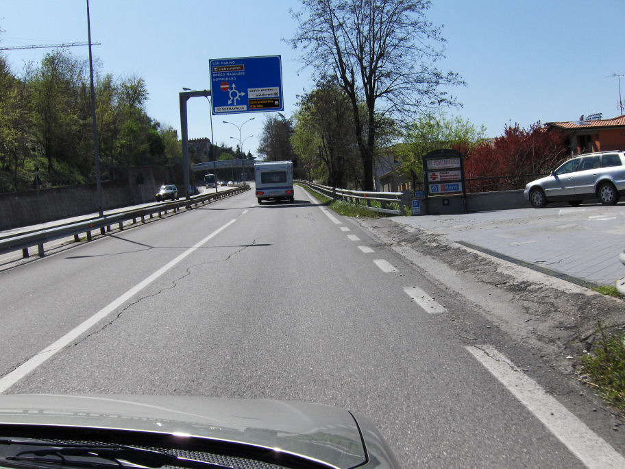 Afrejse fra Camping Serenella. Vi kører mod Camping Centro Vacanze, San Marino