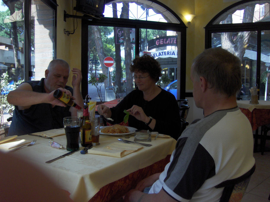 Vi kørte til en by i nærheden og spiste pizza og muslinger