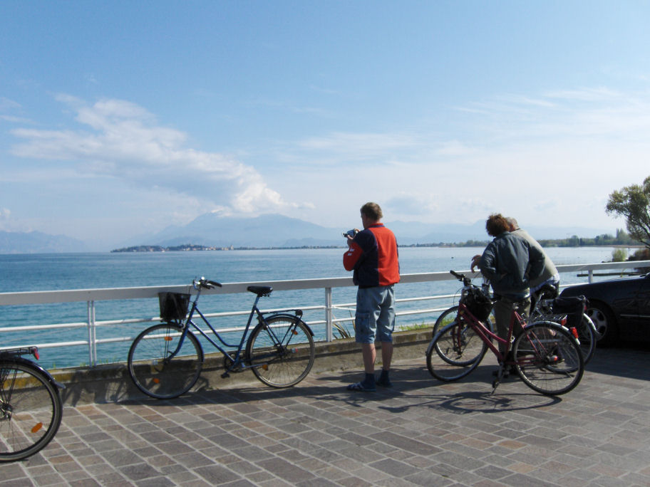 Der er marked i Desenzano by i dag. Vi har tænkt os at cykle, der er ca. 6 km derind, vi har tidligere været i denne by, når der er marked og det er svært at finde parkeringspladser.
