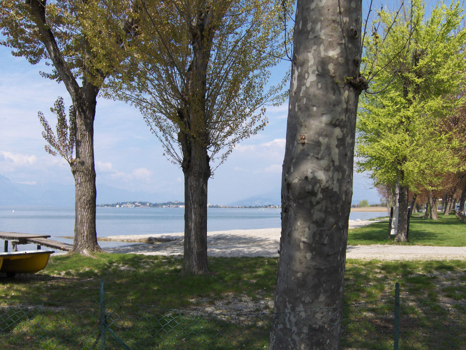 Da vi kommer tilbage på campingpladsen igen, går Kirsten og mig ned til stranden og fotograferer mod Sirmione