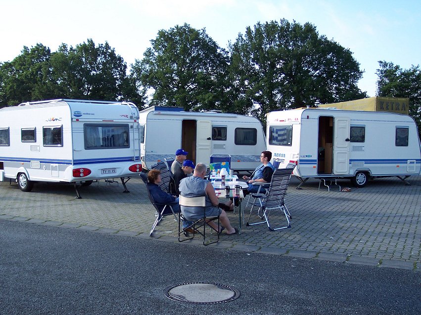 Om aftenen regnede og tordnede det. Vi kunne umuligt sidde udenfor, selvom vi har markiser på campingvognene, så vi fordelte os i 2 campingvogne; mændene i den ene og kvinderne i den anden. Børnene var der, hvor de nu helst ville være.