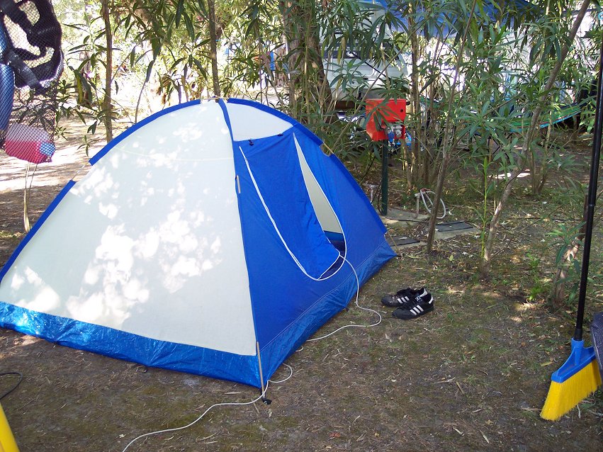 Temperatur om morgenen 22º. Camilla, Kristian og Kristoffers plads til venstre og Kirsten og Johns plads til højre: