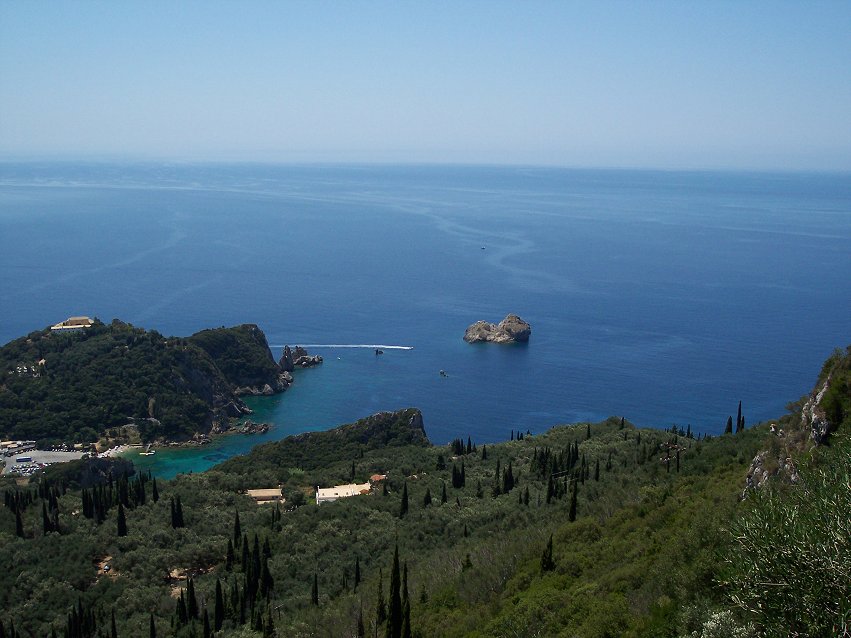 Vi kørte til Paleokastritsa på vestkysten af Korfu.