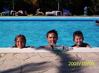 Ved egen strand og pool. Louise, Kennie og Kristoffer: