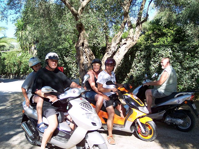 Mændene og børnene tog en tur op af Korfus østkyst på lejede scootere. Lena og Camilla fik en lille køretur, da de var kommet tilbage igen: