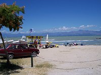 Sidari: Der blæste en hel del i Sidari. Vi spiste på Mc Donalds. Det var meget billigere end i Danmark, f.eks. kunne man få 2 softice til kun 1 €.