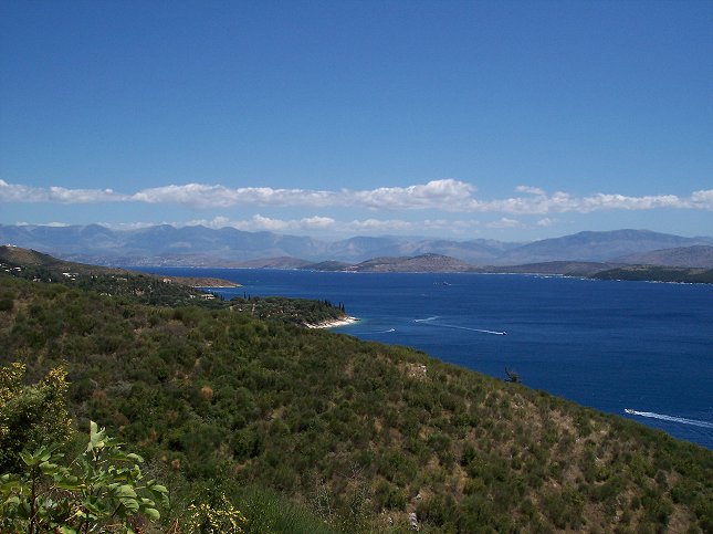 Vi kører en tur op til Sidari i nordenden af Korfu. På vejen kører vi forbi Ipsos, hvor vi bestiller 2 både til i morgen. Pris 80 € pr. båd. Vi gør holdt et sted undervejs til Sidari og nyder udsigten: