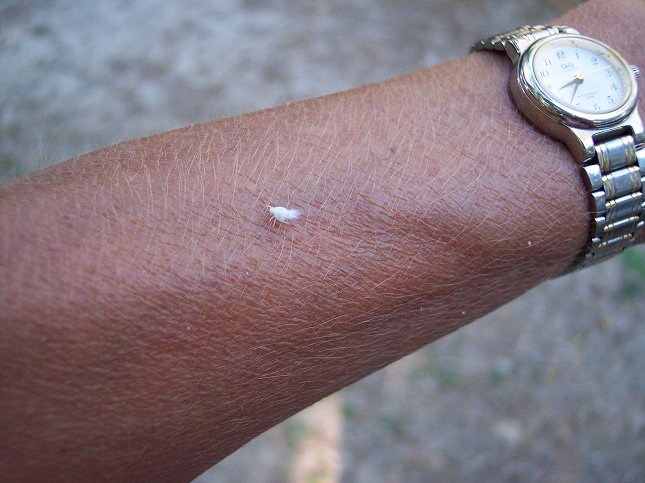 Et lille hvidt insekt på min arm, det er en skam, at den ikke vil sidde stille, så jeg kan få et nærbillede af den, den ser sjov ud bagi: