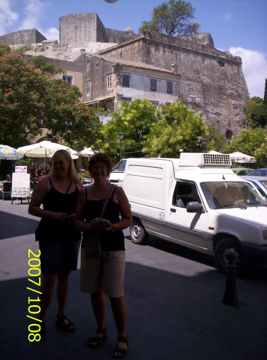 Camilla, Lena, Kirsten og mig tog med en bus ind i Korfu by, hvor vi så 'det hele' og spiste på en restaurant: