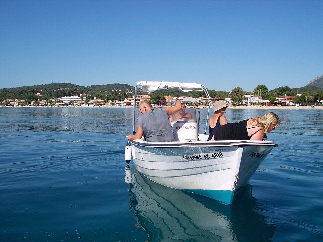 Vi kører til Ipsos, det er den første by, man kommer til fra Dassia, når man kører nordpå langs kysten. Vi havde lejet 2 både til kl. 10.