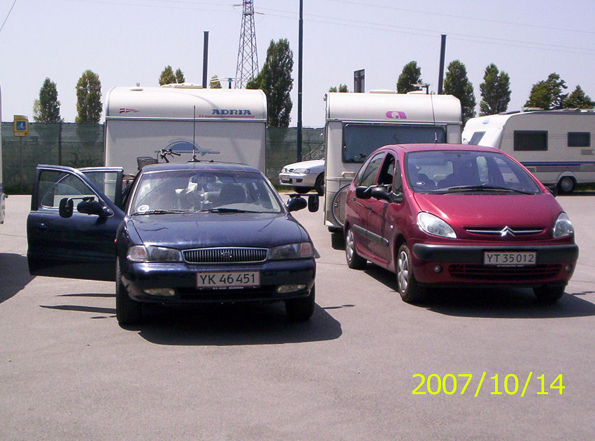 Om aftenen omkring spisetid holdt vi ind i et skovområde, hvor vi spiste. De fleste af os fik rigtig mange myggestik på den korte tid, vi var der. Bagefter ville nogle af os en tur i vandet; stranden lå tæt på. Campingvognene havde vi inden da placeret på en parkeringsplads langs med vejen, se billederne herunder. Der blev kigget under motorhjælmene - der var igen gået en kilerem og mændene opdagede årsagen til, at den var ved at springe igen: der var et spor for meget i remmen! Vi var nødt til at blive på stedet til næste morgen, hvor mændene så kunne finde et værksted og få købt en ny rem. Inden vi gik til ro, kom der er politipatrulje forbi. De ville høre, hvorfor vi holdt der. Da de hørte, at vi skulle have en reservedel på et værksted næste morgen, fik vi en skriftlig tilladelse til at blive på stedet, så vi kunne altså blive der helt lovligt.