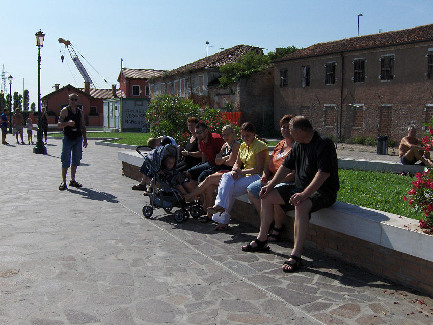 Vi ankommer til Camping Fusina før dæmningen i Venedig - omkring ved 14 tiden. Vi har tidligere været på denne plads og da vi bliver spurgt, om vi vil være på en rolig del af pladsen eller et sted med mere liv, beder vi om at være på den mere livlige del af pladsen. Selvom vi ikke selv synes, vi støjer, så er vi jo mange afsted. Da vi tjekker ind, køber vi samtidig med en billet til en turistbåd, der sejler ind til Venedig.