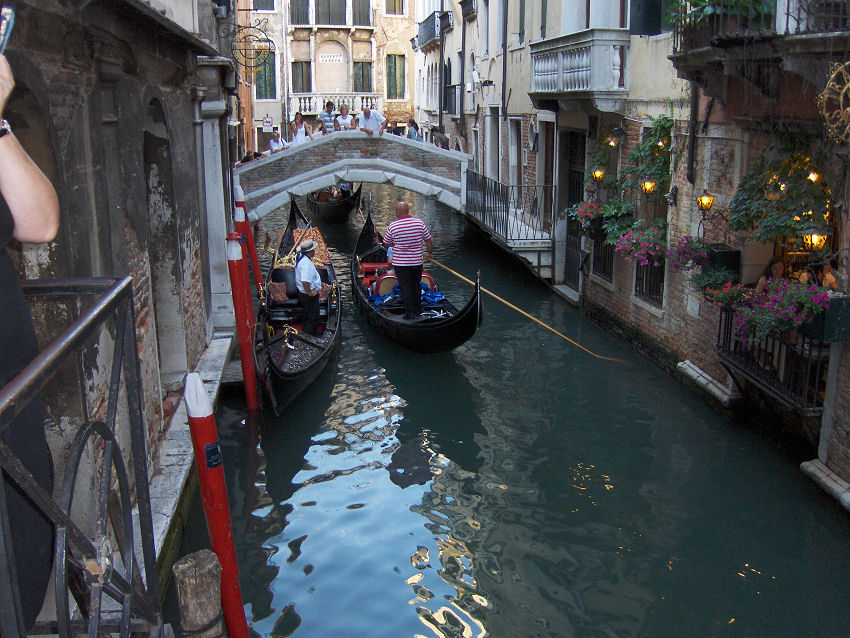 Vi går gennem Venedig til Rialtobroen: