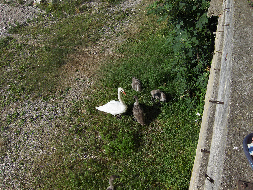 Der er en flot udsigt fra pladsen, næsten flottere, end den man har på østsiden af søen. Vores pladser ligger mod søen, med der er vel omkring 3 meter ned. Se de sidste to billeder herover. Det er ikke ligefrem egnet for små børn.