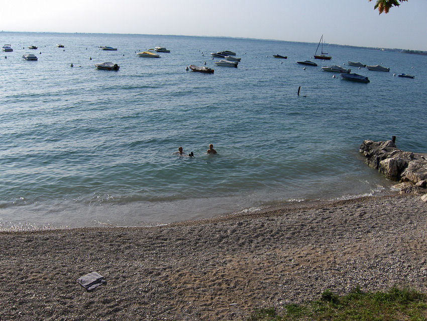 Selvom vandet var temmeligt koldt i Gardasøen, kom Kristoffer og Vibeke helt under:
