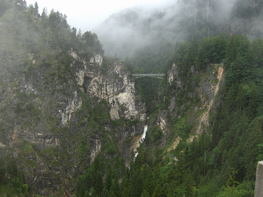 Sidste år sprang vi slottet Neuschwanstein over, fordi det regnede helt utroligt meget. I år skulle det så være. Det regnede igen ganske meget, men efter indkøb af paraplyer til de som ingen havde i forvejen, vovede vi os op til slottet. Vi ankom ved 13 tiden og kunne først få billetter til kl. 15.20, og det var til en rundtur på slottet med italiensk guide. Skulle det have været med engelsk eller tysk guide, havde vi skullet vente endnu længere. Slottet var lige så flot, som det altid har været, men i modsætning til tidligere besøg på slottet, så undrede det os, at 'guiden' ikke sagde noget som helst (bortset fra at fotografering var forbudt!), kun de der havde været så forudseende at tage en 'audio' ved indgangen, fik informationer undervejs. Det var en 'audio guide tours', vi var kommet med på og der var langt flere deltagere på vores rundtur, end vi har været ude for tidligere. Det er ikke en tur, vi vil tage en gang til!