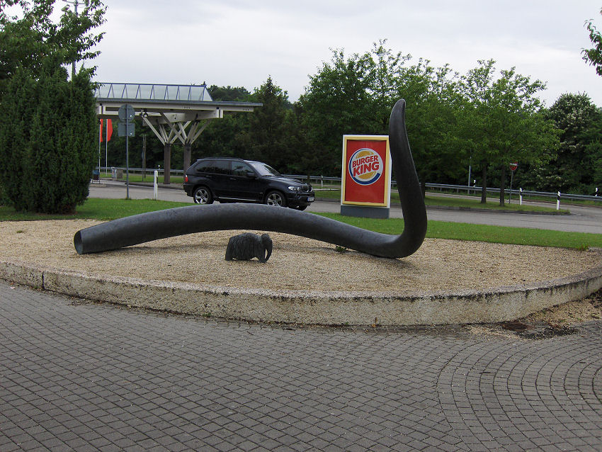 På rastepladsen Lonetal kan man se denne skulptur: - der er fundet rester af mammutter i Lonetal.