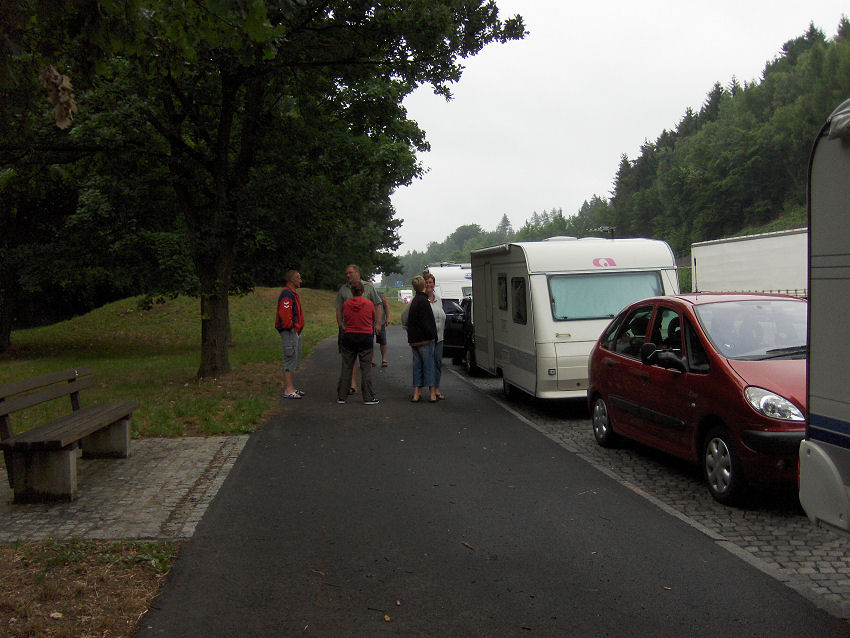 Ankomst til DCC Kur Campingpark, Bad Gandersheim i Harzen, Tyskland midt på eftermiddagen: - det er en ret stor campingplads og der var mange tomme pladser. Vi gav allesammen kun 17,50€ for en overnatning.