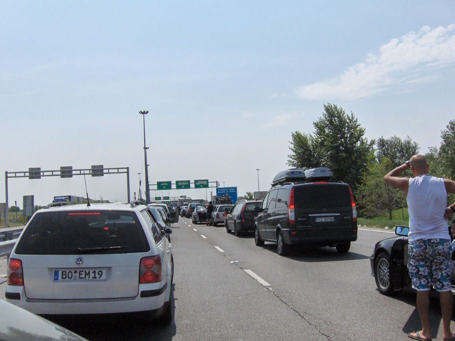 Vi var ikke kommet ret langt ind i Serbien, før vi sammen med alle andre biler, blev gennet ind på nogle store rastepladser af politiet. Vi synes ellers, at vi var blevet tjekket grundigt ved grænsen og kunne ikke rigtigt regne ud, hvorfor vi blev holdt tilbage. Det viste sig så, at det var fordi, at den kroatiske premierminister skulle køre denne vej med politieskorte både for og bag. Der gik vel en times tid, før vi fik lov at køre videre igen.