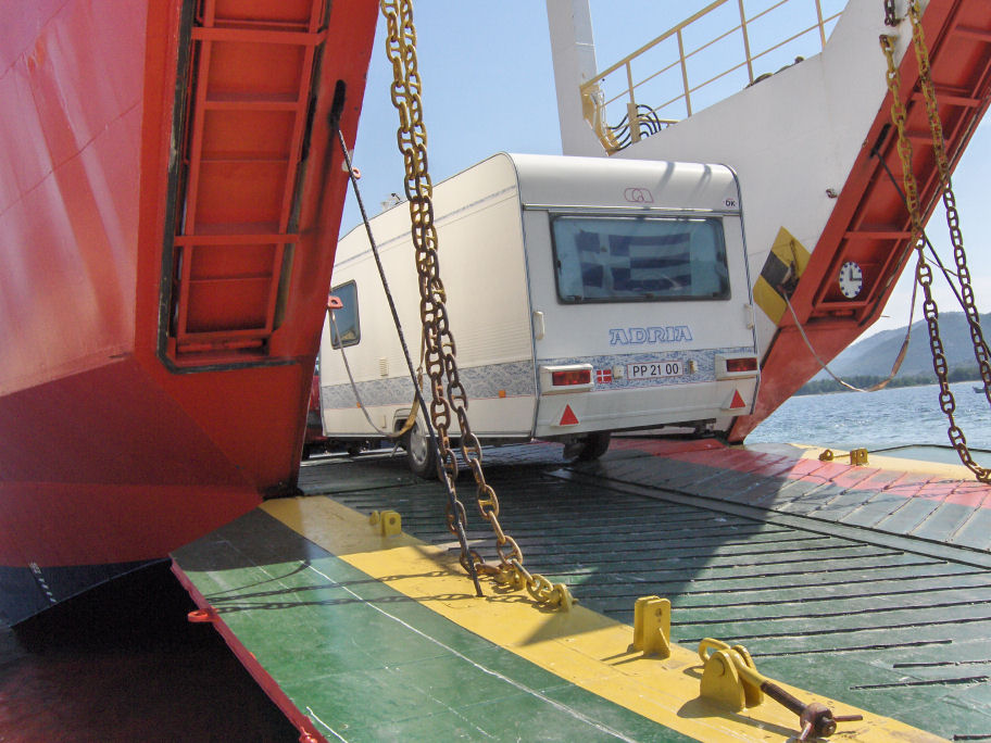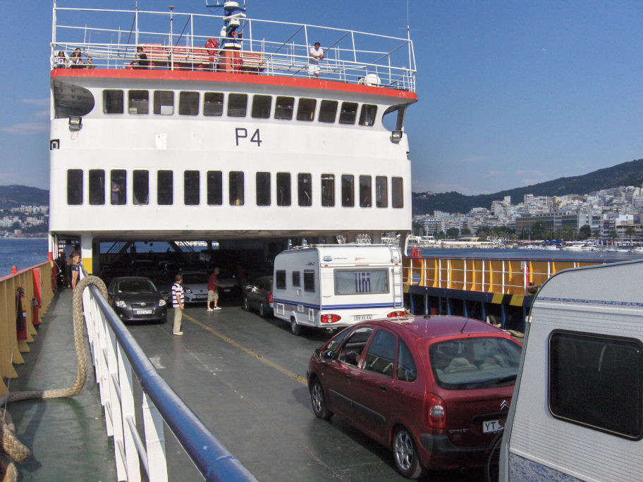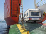 Vi kørte de få meter ned til færgen 'P4', der sejlede præcist kl. 9. Pris for billetter til 2 voksne, bil og cv: 63 euro.