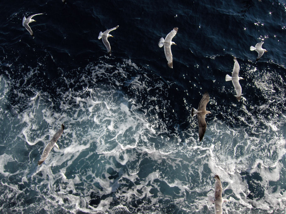 En flok måger fløj efter færgen hele vejen fra fastlandet til Thassos
