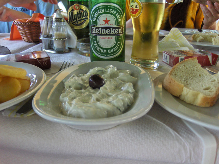 Vi spiser frokost på den første restaurant udenfor pladsen - og jeg bestiller en gang tzatziki og nagasaki. Tjeneren ser lidt spørgende ud til det sidste, og jeg siger cheese nagasaki, før det går op for mig, at jeg har sagt nagasaki og ikke saganaki. Det blev der lidt grin ud af, Kresten spurgte, om jeg ikke hellere ville have en kawasaki - det må vel være en hurtig saganaki. :-)