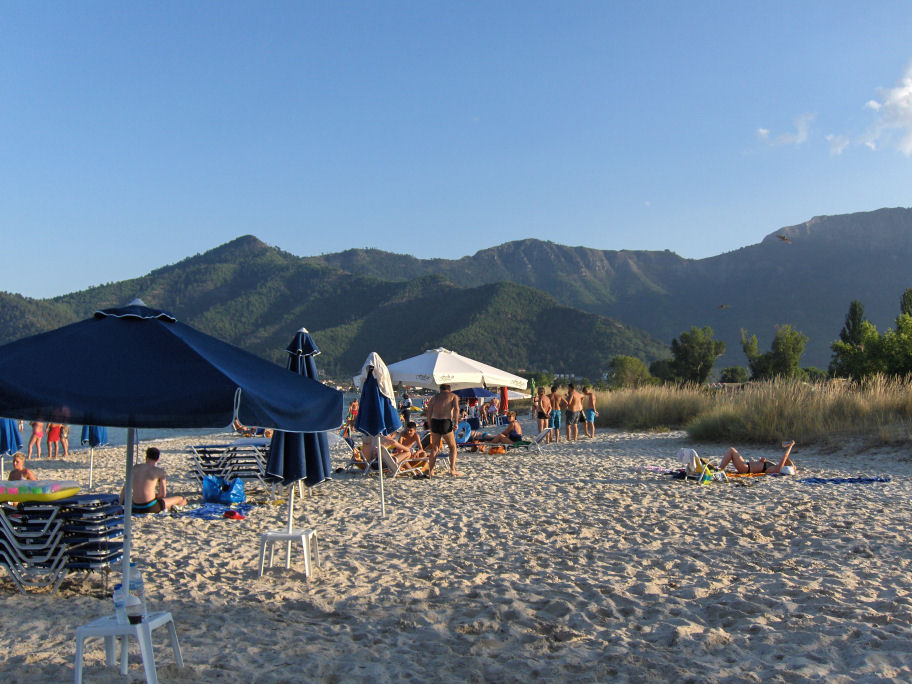 Da vi kom til Louloudis Beach, fortalte en servitrice i strandbaren, at tankvognschaufførerne strejkede. Vi håber ikke at strejken varer længe; vi har en kvart tank benzin og Kristian har næsten ikke mere.