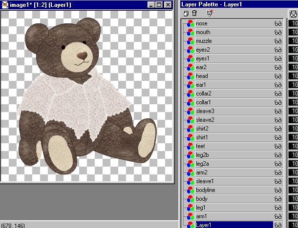 Klik på laget 'ear1' der er det nederste lag i hovedet for at gøre det aktivt.