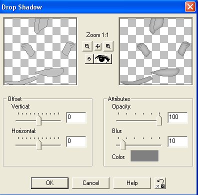 Klik på: Effects / 3D effects / Drop shadow og brug disse indstillinger:
